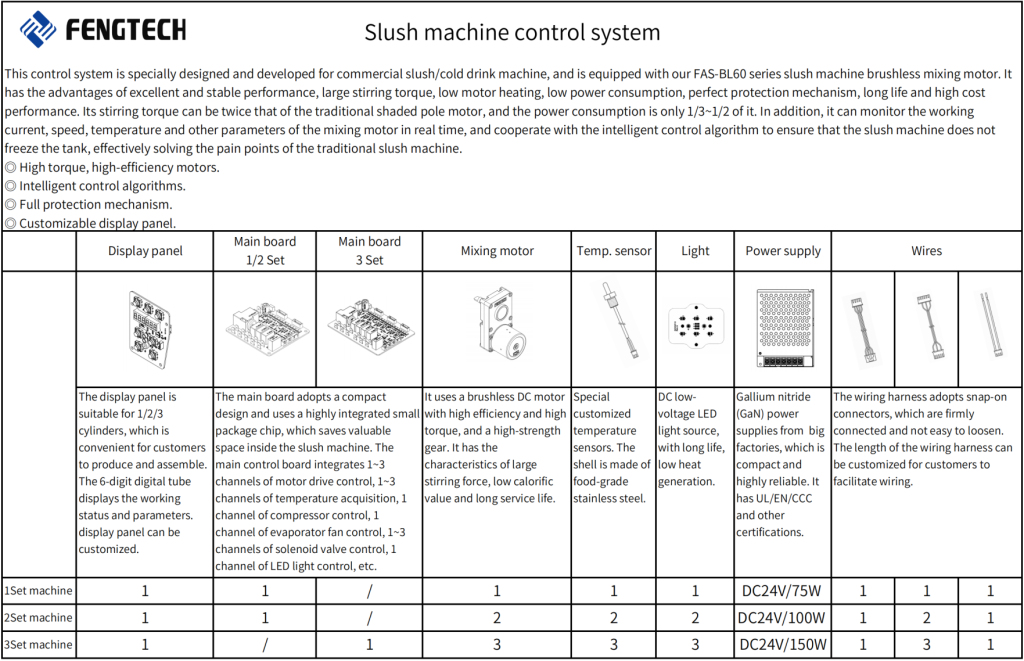 Fengtech has been focusing on the research and development and manufacturing of slush machine motors since 2017, starting with commercial slush machine motors and subsequently developing control panels, protection systems, and testing systems. We also have a dedicated laboratory and testing equipment for slush machine products to facilitate ongoing optimization.